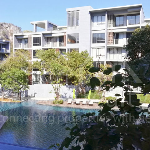In the nicest and most beautiful road in Khao Yai, just along the National Park in a hilly landscape, the buildings of this condo almost disappear in the nature. The grey and wood material fit into the trees and mountain landscape which is also viewable from the 2nd floor condo itself from the balcony. Facing North, you are north, the balcony is usable both morning and evening without being burned by the sun. The 2-room condo can with rope up as one large room, or divided with sliding doors in frosted glass that allow privacy, but still let the light shine through. The enclosed building is very private, and the different level pool, very nice garden, gym, private lobby and nearby restaurant makes this an upscale, calm cool and cozy place and escape from city life. The exiting owner has never rented out the unit and the building maintenance is excellent.